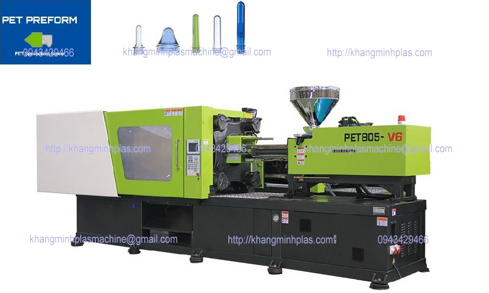 * Ưu điểm: Dòng máy ép phôi PET kí hiệu "PET" chuyên dùng ép các phôi PET có kích cỡ khác nhau. Với thiết kế trục vít chuyên dụng đặc biệt phù hợp cho nhựa PET, nó làm tăng cao tốc độ hóa dẻo và trọng lượng phun nhiều hơn.