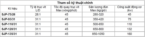 THAM SỐ KỸ THUẬT MÁY ĐÙN TRỤC VÍT ĐÔI SONG SONG (DÒNG ĐÙN SẢN PHẨM)