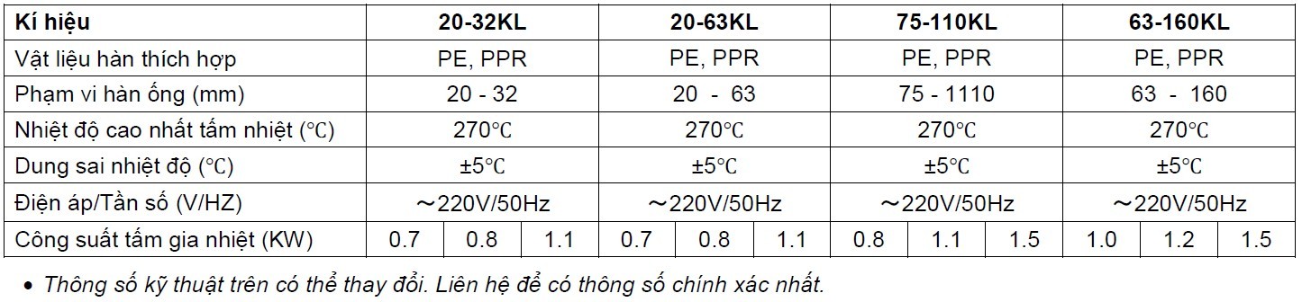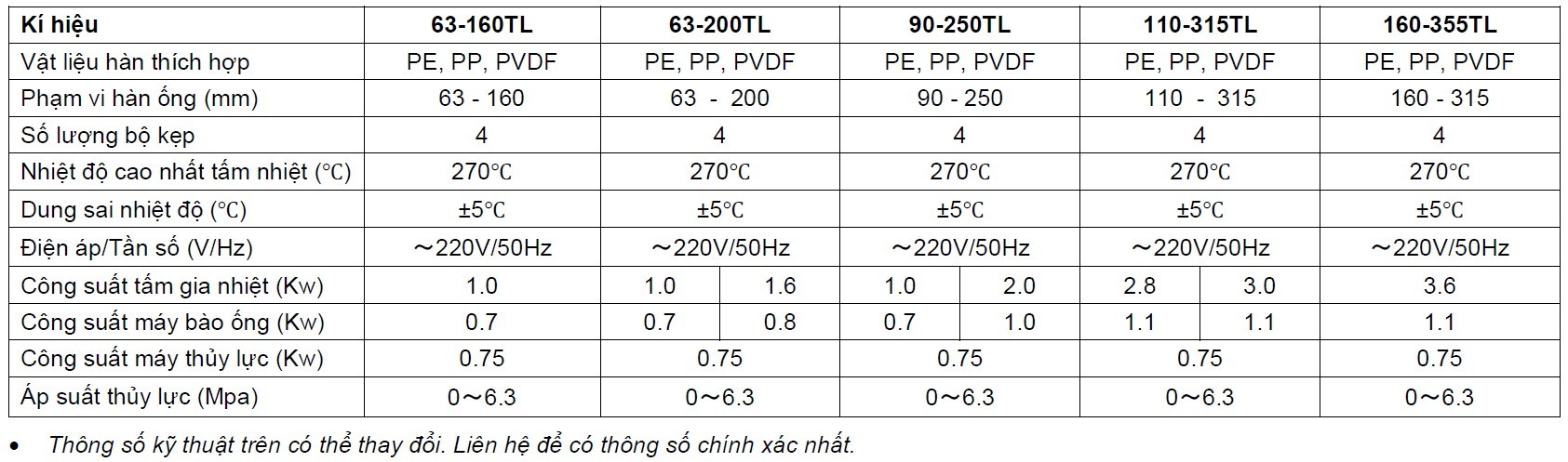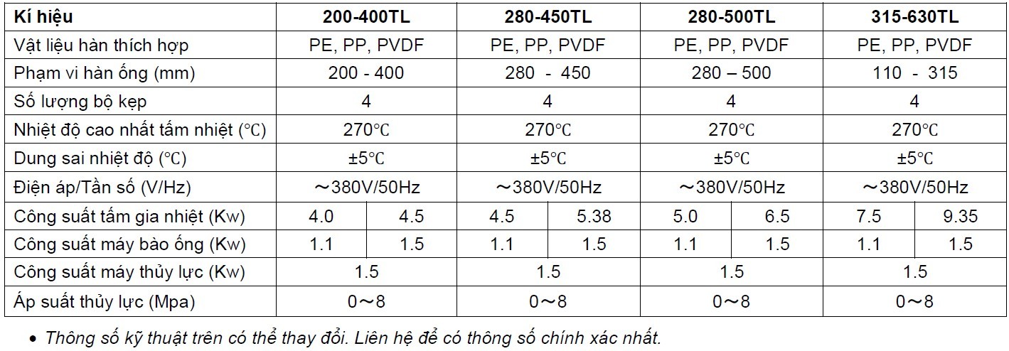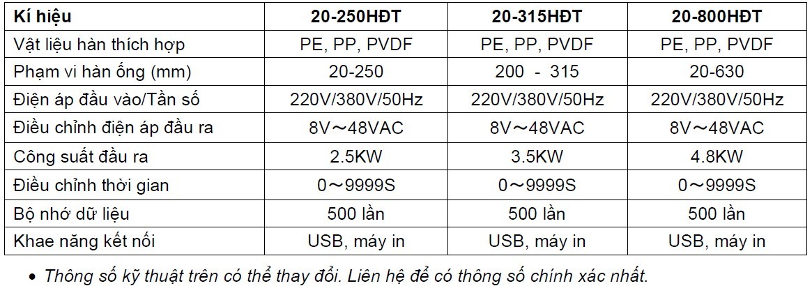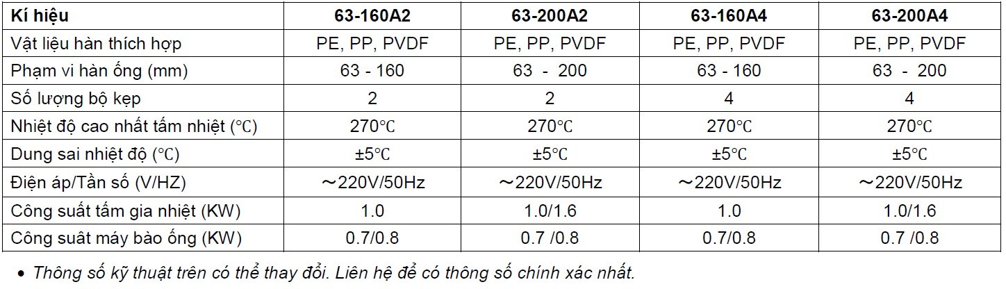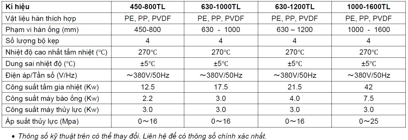 I. THAM SỐ KỸ THUẬT MÁY HÀN ĐỐI ĐẦU